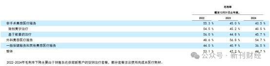 医美国际当下的核心问题在于,医疗耗材成本居高不下,与市场竞争加剧导致的促销套餐价格下行形成"剪刀差",这一结构性矛盾持续挤压公司的毛利率空间。数据显示,2024年公司毛利率已降至44.7%,较2022年同期已下滑8.4个百分点。