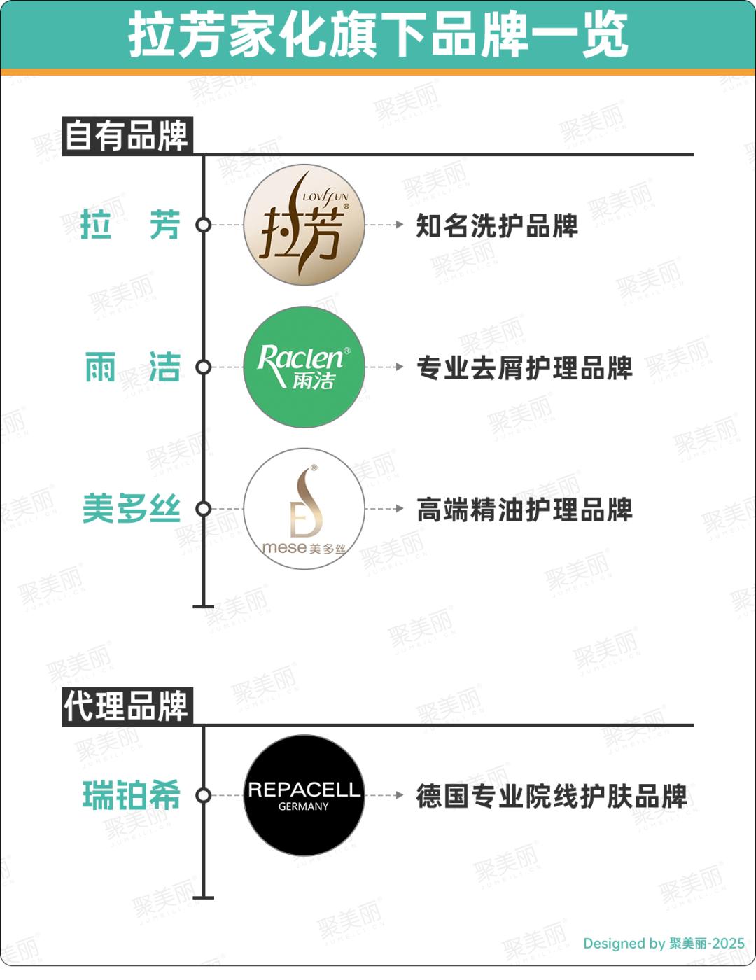 财报显示,目前拉芳家化旗下品牌主要包括自主洗护品牌“拉芳”、“雨洁”和“美多丝”等,以及代理德国护肤品牌“瑞铂希”。