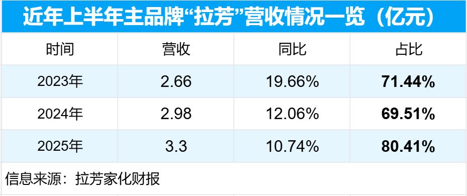 财报披露,本报告期内,主品牌“拉芳”虽实现营收增长,但80.41%的高占比却暗藏危机。