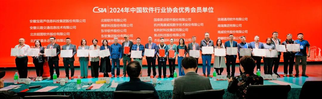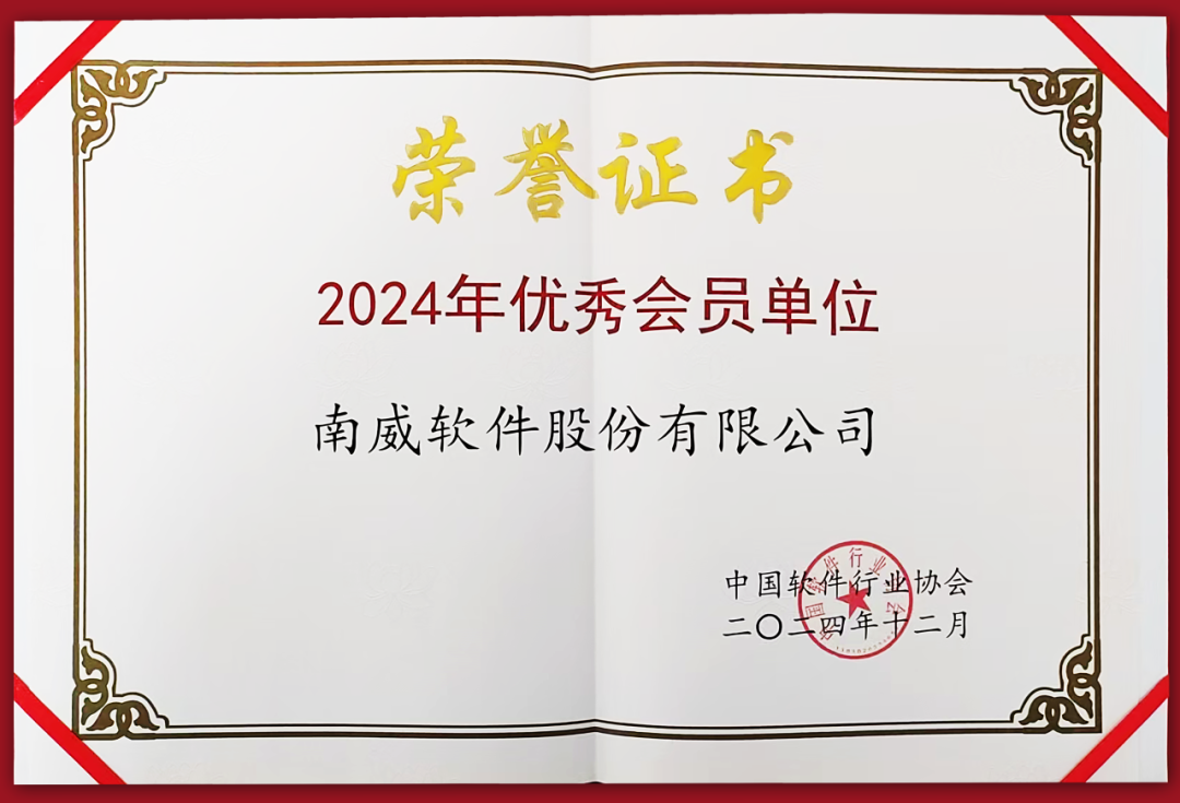 此次颁发的“2024年优秀会员单位”,是中国软件行业协会从全国3500余家软件企业会员单位中,基于科技创新、经营发展、交付能力等多个纬度,最终遴选出22家优秀会员单位。南威软件集团获此殊荣,充分体现了协会对南威综合实力及在推进软件产业发展所作贡献的高度认可。