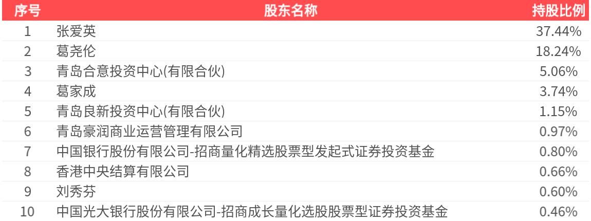 公司股东户数为1.30万户,前十大股东持股数量为2.35亿股,占总股本比例为69.13%,前十大股东持股情况如下: