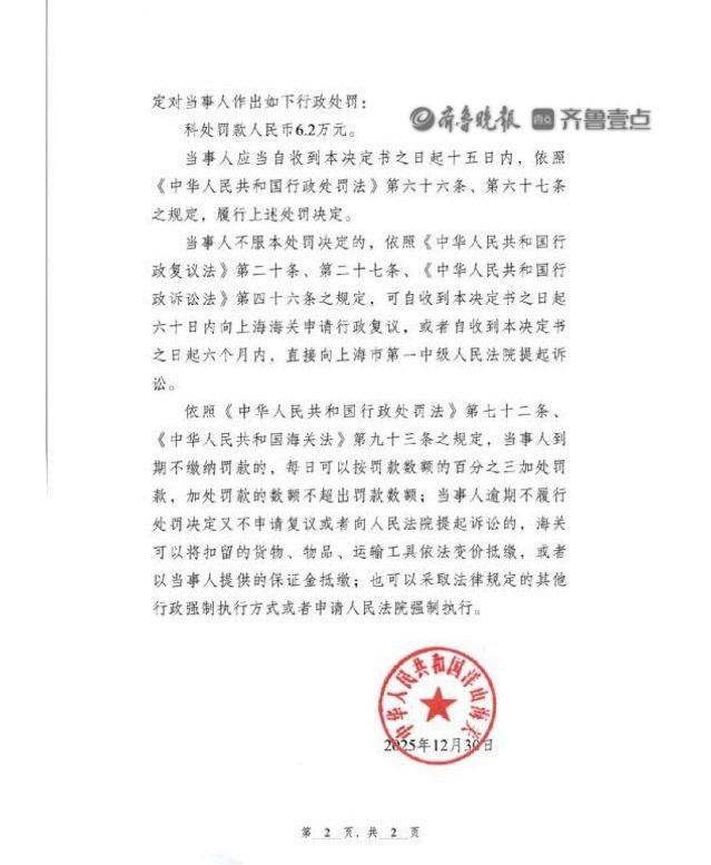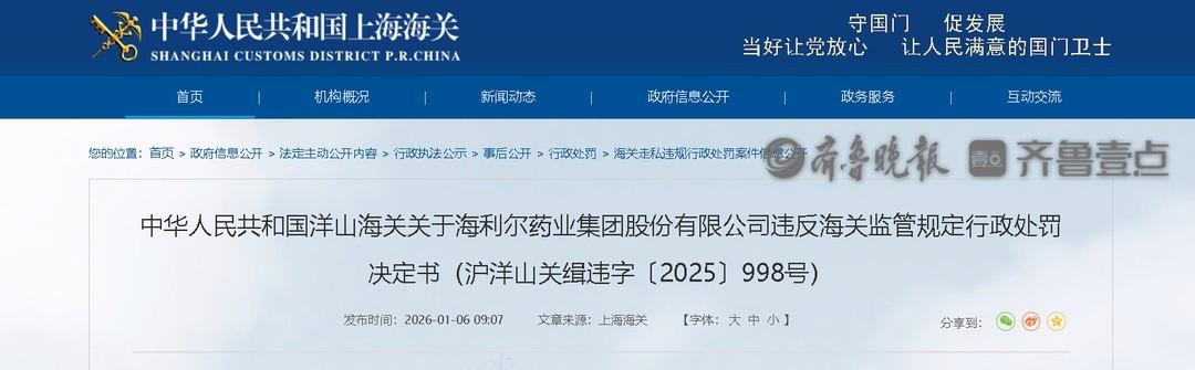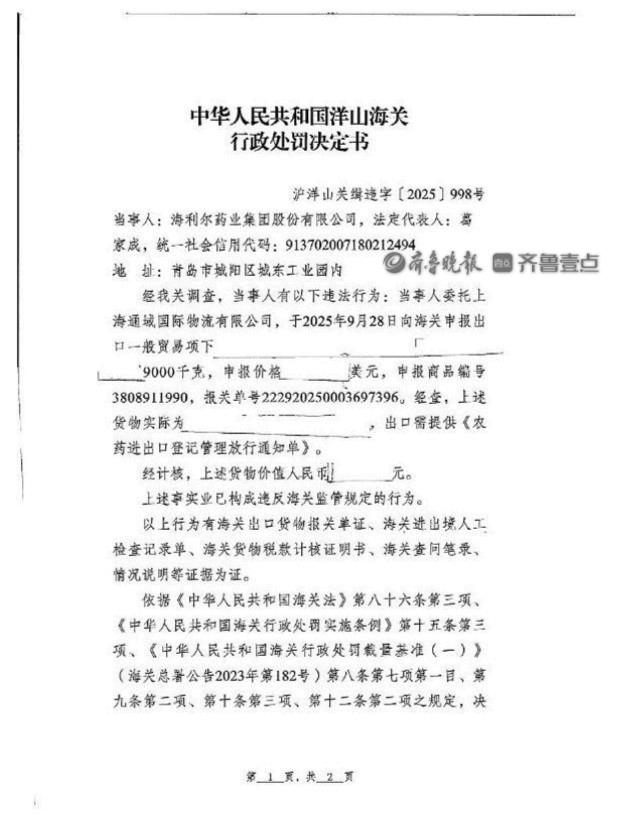 近日,中华人民共和国洋山海关发布关于海利尔药业集团股份有限公司(海利尔 603639)违反海关监管规定行政处罚决定书(沪洋山关缉违字〔2025〕998号)。