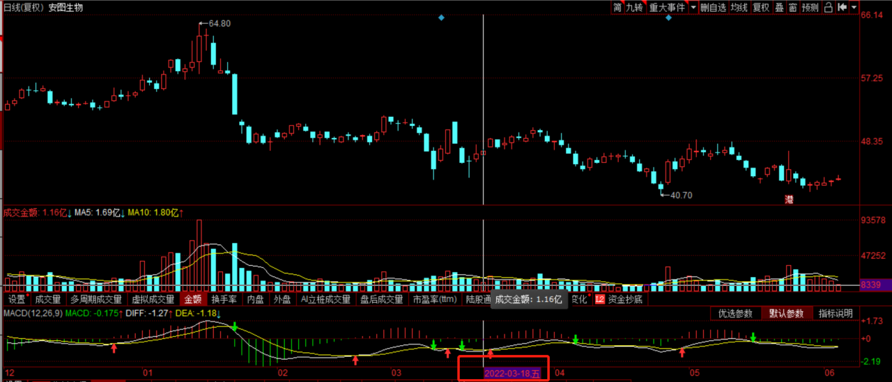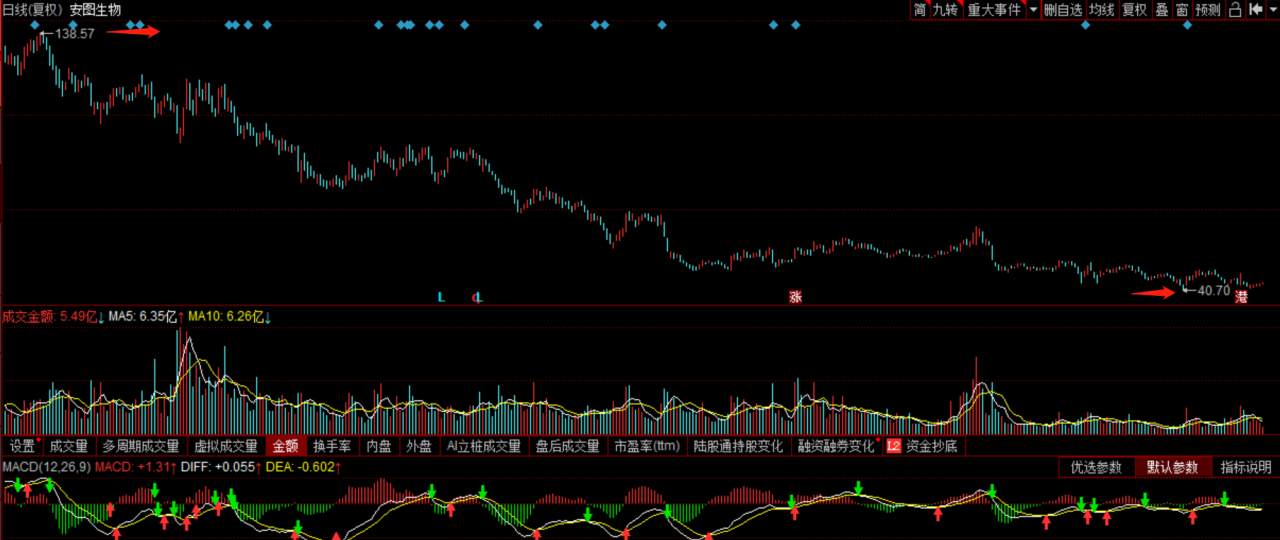 截止6月5日,郑州安图生物工程股份有限公司(以下简称“安图生物”)股价自2020年11月3日见138.57元高点后(前复权),股价便一路下跌,在2022年4月26日见到最低价40.7元,并且反弹弱于上证指数。