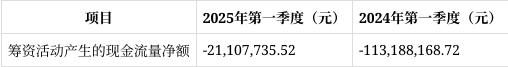 筹资活动产生的现金流量净额为-0.21亿元,上年同期为-1.13亿元。筹资活动现金流入主要来自吸收投资、取得借款等,现金流出主要用于偿还债务、分配股利等。