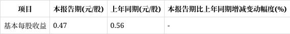 基本每股收益为0.47元,上年同期为0.56元,同比下降。基本每股收益是投资者关注的重要指标,它反映了每股普通股所享有的净利润。