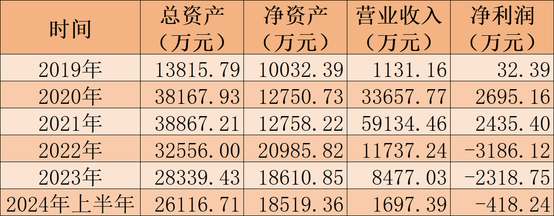 2019-2023年以及2024年上半年,国网瑞嘉分别实现营业收入1132.16万元、33657.77万元、59134.46万元、11737.24万元、8477.03万元以及1697.39万元;对应的净利润分别为32.39万元、2695.16万元、2435.40万元、-3186.12万元、-2318.75万元以及-418.24万元。