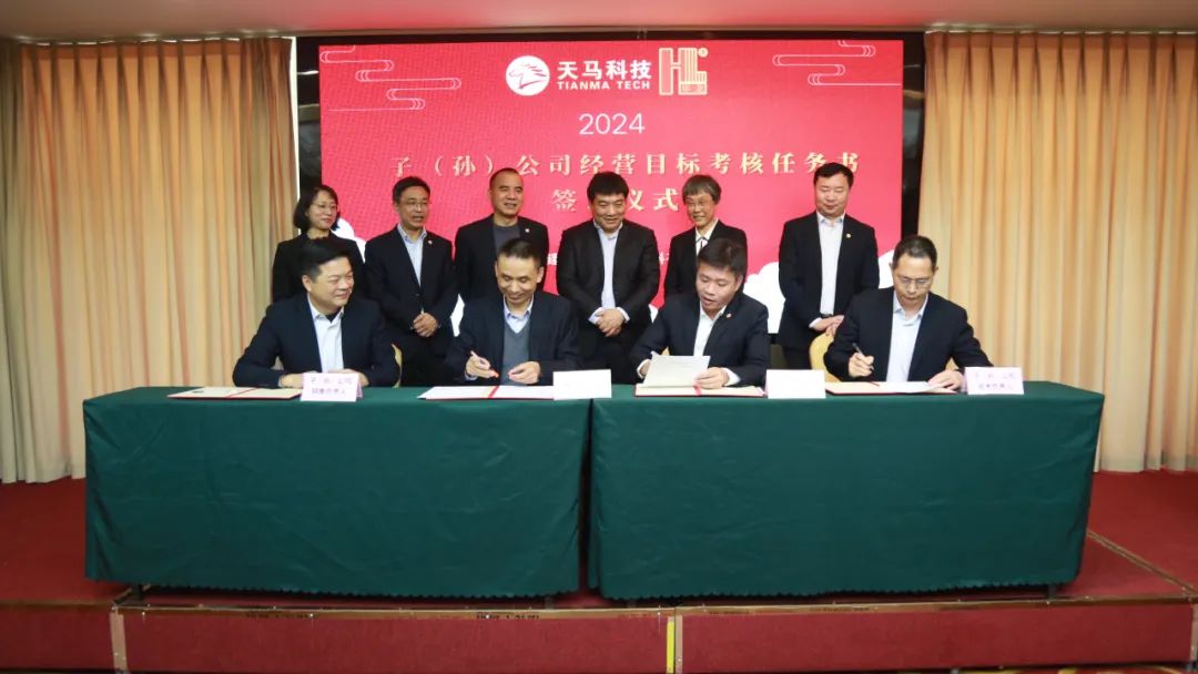 为更加明确发展目标、体现责任担当、实现跨越发展,在天马科技集团董事长陈庆堂先生、华龙集团董事长曾丽莉以及华龙集团其他领导的见证下,华龙集团总经理陈文忠与各子(孙)公司签订了“2024年子(孙)公司经营目标考核任务书”。