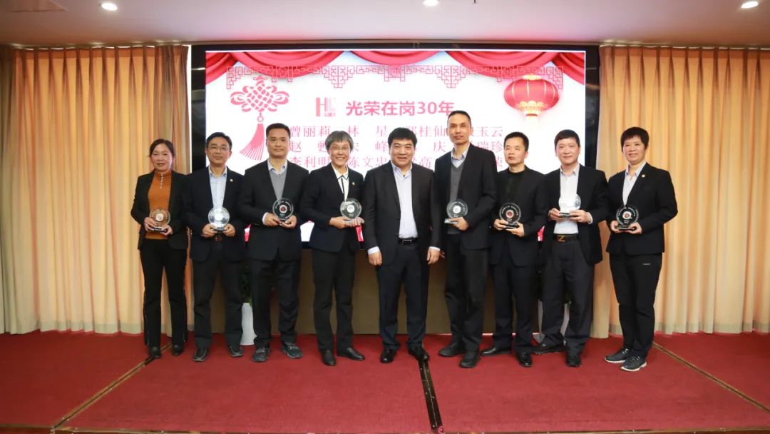 自1988年成立以来,华龙集团沉淀了几十年的人才队伍,是一支召之即来,来之能战,战之必胜的铁军。这其中有多位员工已光荣在岗30年。他们展现出了非凡的忠诚和对公司的无比归属感,这种奉献精神和对工作的热爱,不仅仅体现在他们的工作表现上,更融入到了公司文化的每一个角落。集团为了感谢这些老员工的贡献,特颁发奖章,以示嘉奖!