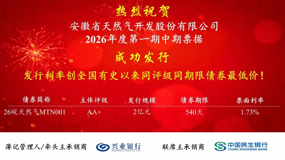 本次中期票据的成功发行,不仅是该公司积极拓展融资渠道、进一步降低融资成本、优化债务结构的重要举措,更能为保障区域能源安全、推动清洁能源供应、服务“双碳”战略目标提供坚实的资金支持。未来,皖天然气将继续秉持高质量发展理念,通过多元化的融资工具支持主业发展,不断提升服务实体经济的能力,为经济社会绿色低碳转型贡献更大力量。