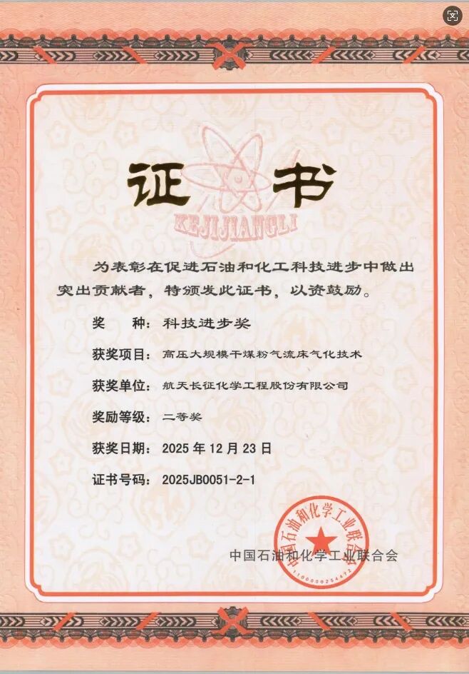 近日,2025年度中国石油和化学工业联合会科技奖励大会在北京隆重举行。航天工程公司技术成果"高压大规模干煤粉气流床气化技术"项目从众多参评项目中脱颖而出,荣获"科技进步奖二等奖",充分彰显了公司在煤炭清洁高效利用领域的技术实力与创新能力。