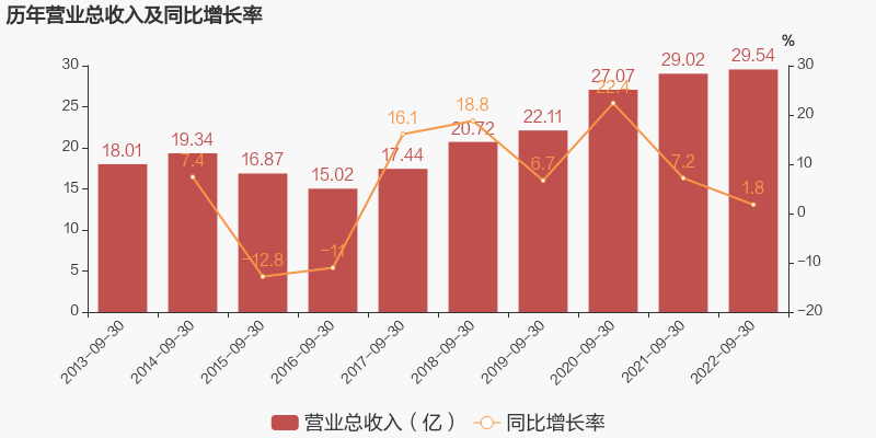 公司2022三季度营业成本21.25亿元,同比增长0.2%,低于营业收入1.8%的增速,导致毛利率上升1.1%。期间费用率为12.3%,较去年下降1.8%。