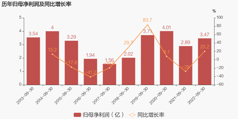 纽威股份于2022年10月29日披露三季报,公司2022年前三季度实现营业总收入29.54亿元,同比增长1.8%;实现归母净利润3.47亿元,同比增长20.2%;每股收益为0.46元。