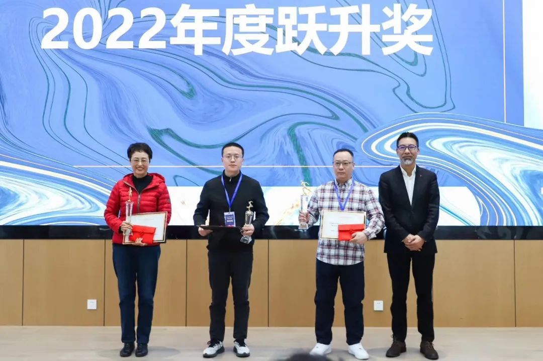 大疫三年,举步维艰,但经销商伙伴依然与公司一起披荆斩棘,砥砺前行。公司在会上对 2022 年度销售业绩三强、业绩增幅三强及新加盟经销商分别颁发了年度贡献奖、年度跃升奖以及年度新秀奖。经销商代表们与公司领导一起分享合作初衷,谈到了当下成果,表达了坚定决心,畅想美好未来。
