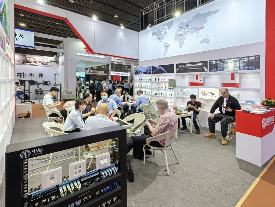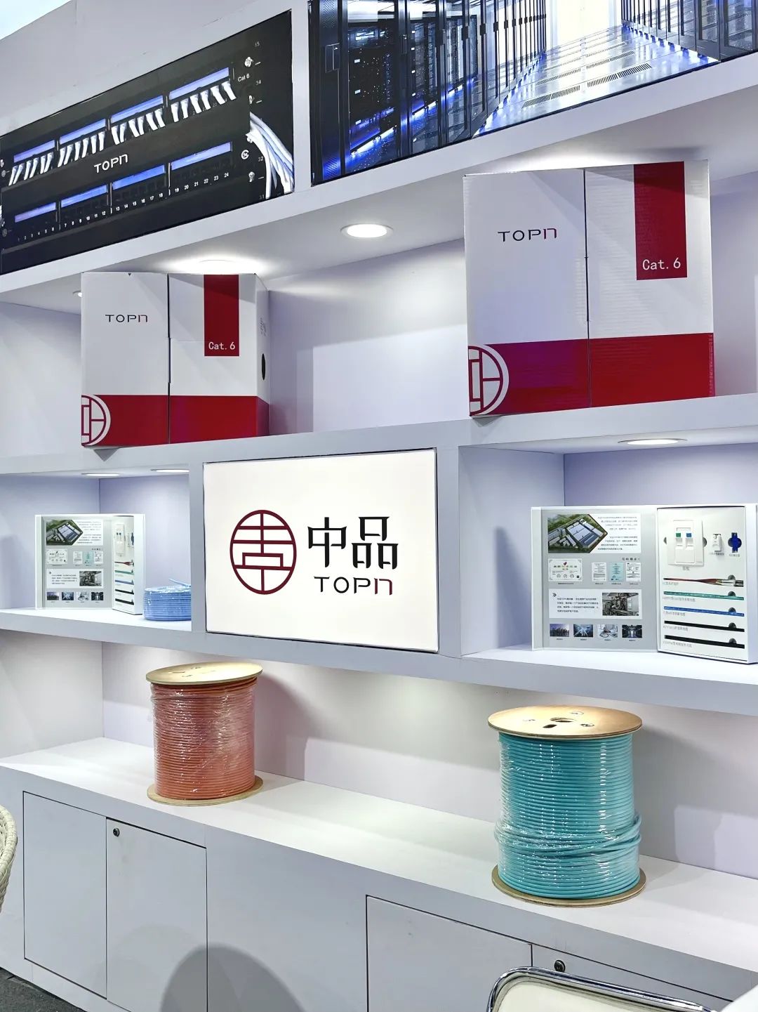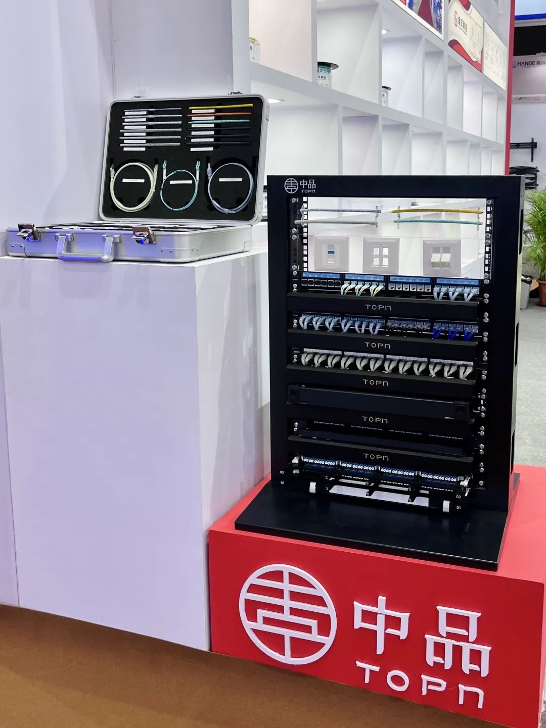 本次广交会,中品TOPN展示的产品系列涵盖铜缆、光纤、数据中心和安防布线产品;展示方式多样灵活,不限于综合布线产品展示架、样品箱、样品盒等,广受参展客户、外商以及政府部门的赞誉。