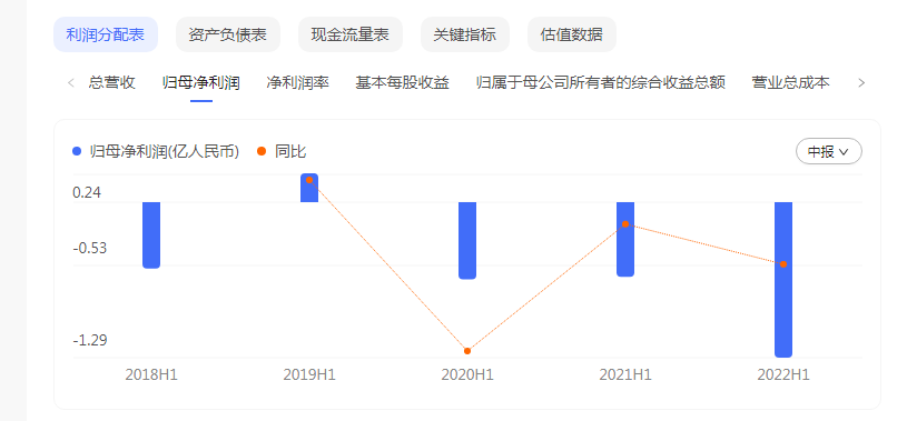 可见,2019年增速就已显疲态。2021年Q2开始,香飘飘连续5季度收入负增。2022年也是香飘飘连续三年中期亏损,同时也是6年内亏损最严重一次。