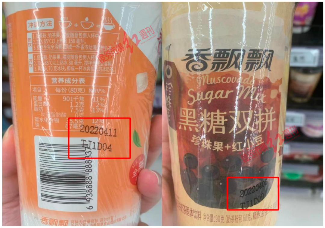 图1物美超市香飘飘奶茶生产日期(积水潭店)