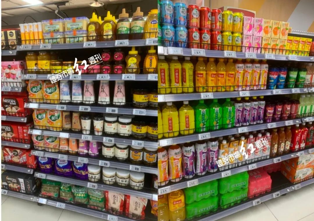 《红周刊》还发现,在这些大型商超和小型连锁超市的周围分布着不少新式茶饮门店,其中不乏喜茶、奈雪的茶、蜜雪冰城等当前热度颇高的“顶流”茶饮品牌。