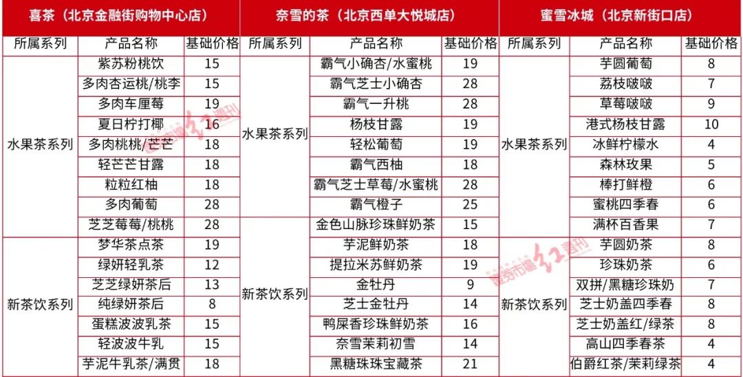 数据来源:喜茶、奈雪的茶、蜜雪冰城小程序