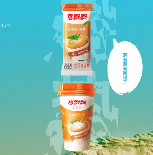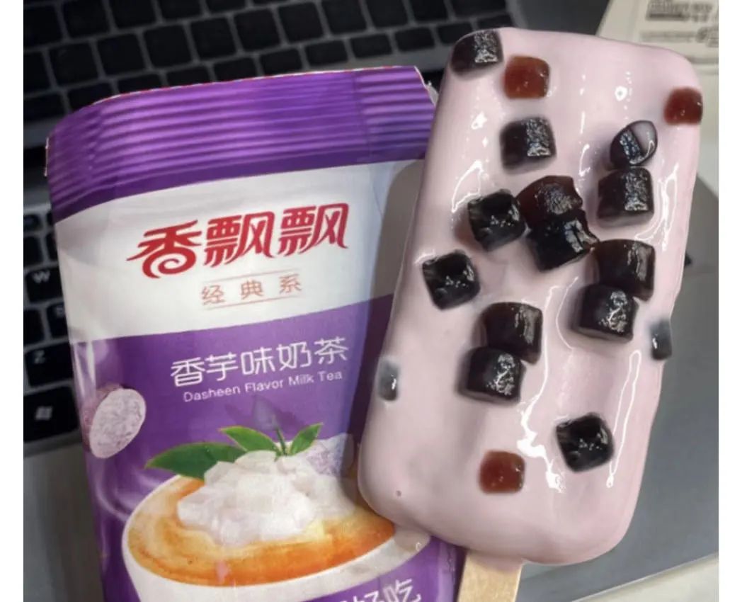 这不,最近连杯装奶茶巨头香飘飘也终于按捺不住了,不再只想着环绕地球转多少圈了,而是给奶茶找了个新搭子,推出了“奶茶冰淇淋”。