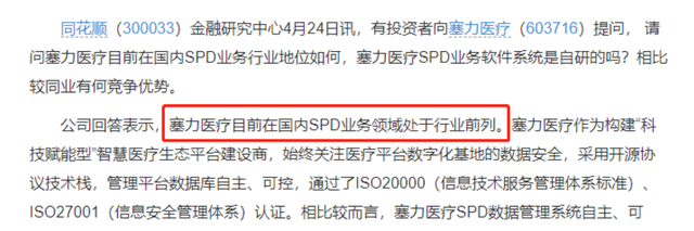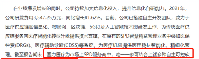 SPD目前的最大市场就是内陆的医疗系统,塞力医疗作为内陆SPD龙头,充分受益沿海发达地区的国产化软件替代。