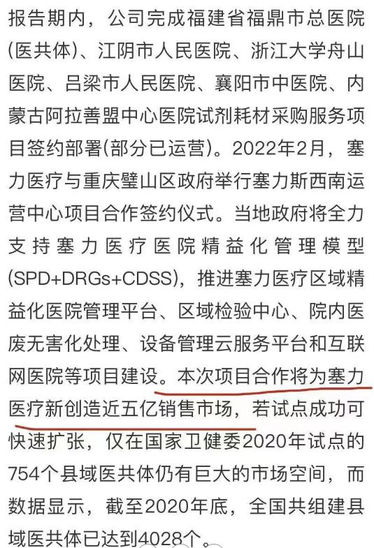 近年来,在我国积极推进医保改革的大环境下,塞力医疗凭借IVD领域多年经验紧抓医疗机构管理精细化、精益化发展,加大在智慧医院、智能化医疗物联网应用及医疗大数据分析平台等领域开发投入,成为最早一批进入SPD行业的集约化服务提供商。