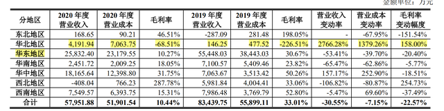 表中华北地区呈现成本倒挂的现象就是对前期无法结算金额的冲回导致,而华东地区毛利率闪电下降大概率也是相同原因。