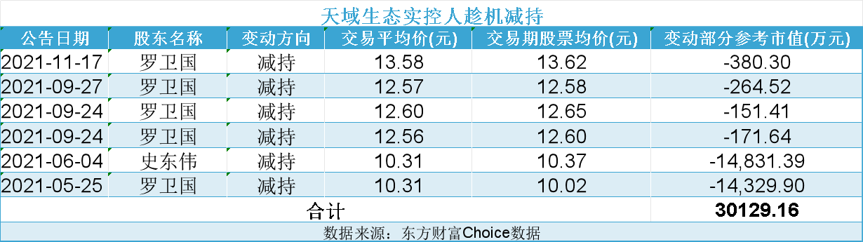据统计,该公司实际控制人罗卫国、史东伟在2021年5月至11月期间,通过减持套现的金额就达3亿元,股票交易的平均价格在10.31元/股至13.62元/股之间,远高于2020年股价的均价。
