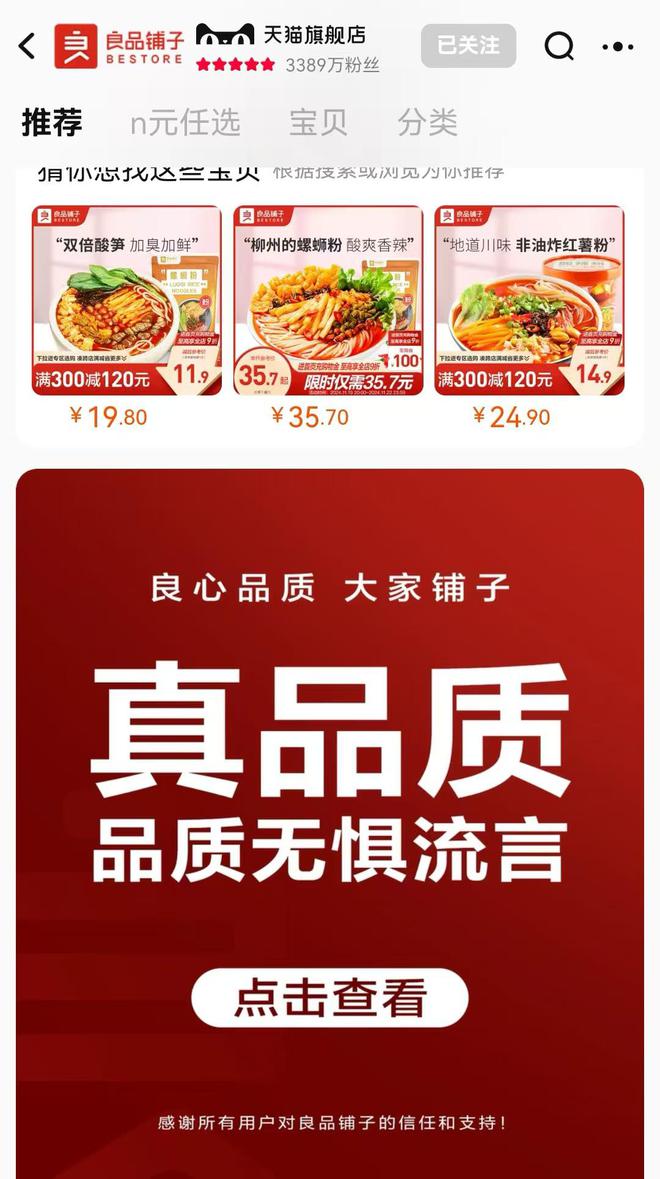 截至目前,良品铺子此前因涉事被下架的相关产品已经在电商平台上重新上架。良品铺子亦在官方旗舰店推荐页的第一栏放出此次的情况公告,并表示“品质无惧留言”。