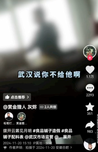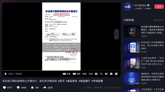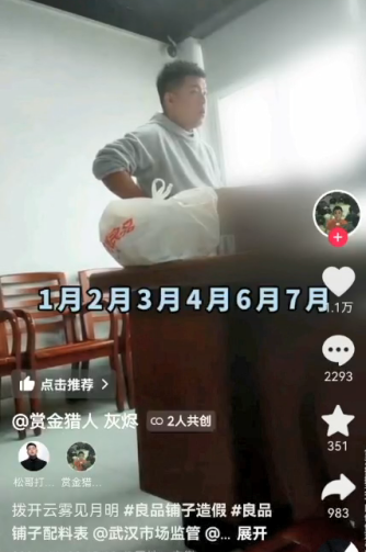 事实情况是,10月30日,打假网红一行5人,就冲进了良品铺子总部的办公楼开始了“炮哮式”打假,并于11月2日开始,陆续在几大社交平台发布一连串所谓打假视频,直接给良品铺子扣上了“藕粉里有木薯粉,酸辣粉里没有粉”的罪名,并引发病毒式扩散。