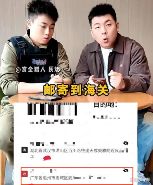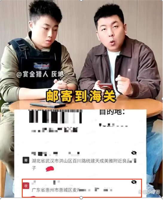 11月19日,“松哥打虎”方两人发布视频,称在线上买了产品直接邮寄到海关,邮寄地址是广东省惠州市桥西麦岸路……有网友发现,这个地址既不是拱北海关的地址(正确地址:广东省珠海市香洲区银烨路501号),也不是惠州海关的地址(正确地址:广东省惠州市惠城区仲恺大道)