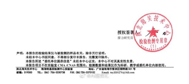 而且,拱北海关检测机构工作人员也对外澄清,表示在接受委托时,已明确告诉委托方报告无法盖相关资质章,“仅提供内部技术交流和科研用途”,“松哥打虎”称可以接受这个情况。