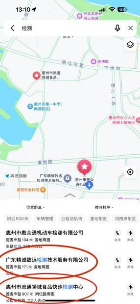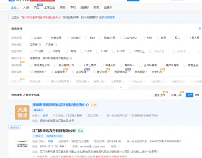图:按快递地址搜索麦岸路附近检测机构,企查查“广东精诚致远检测技术服务有限公司信息”相关信息
