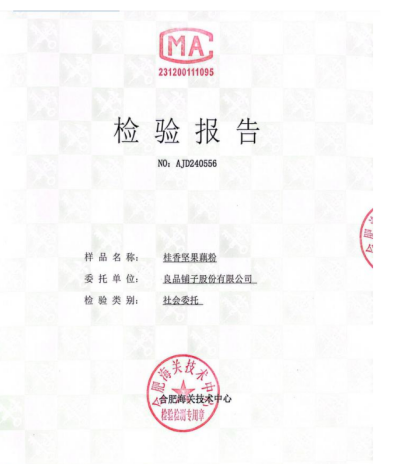 图:“松哥打虎”检测报告(没有CAM章)良品铺子检测报告(有CAM章)