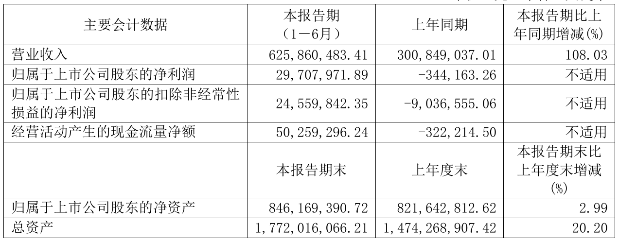 挖贝网8月31日,天安新材(603725)近日发布2021年半年度报告,报告期内营业收入625,860,483.41元,同比增加108.03%;净利29,707,971.89元,同比扭亏为盈。