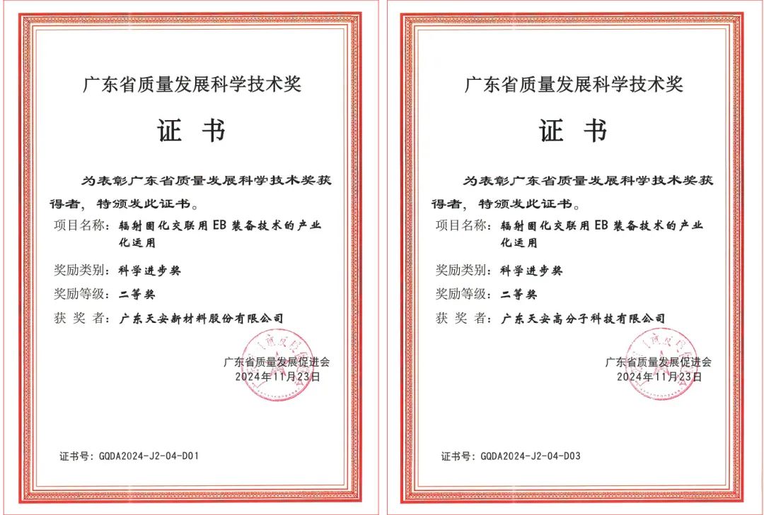 此次荣获广东省质量发展科技进步二等奖,是对天安新材及其合作伙伴在技术创新和产业化应用方面取得的重要成果的肯定。项目的成功实施,不仅推动了行业的技术进步和产业升级,还为广东省乃至全国的高质量发展注入了新的活力。