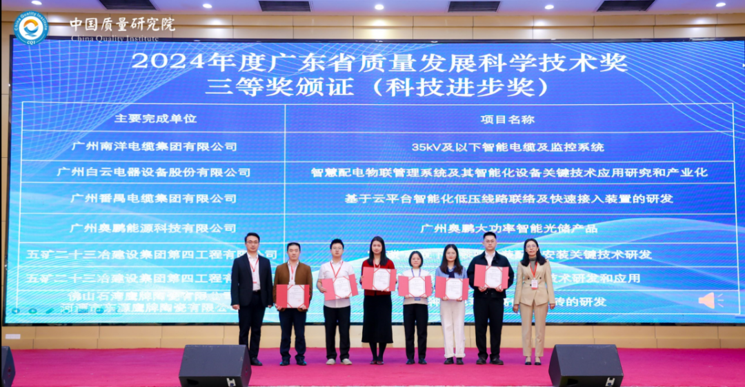 2024年11月23日,2024年质量人年度大会暨首届粤港澳大湾区卓越质量管理交流大会在广州隆重召开,会上表彰了2024年广东省质量发展科学技术奖获奖企业。其中,天安新材、天安高分子携手摘获质量发展科学技术二等奖,旗下控股子公司鹰牌陶瓷获三等奖。