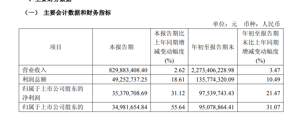 前三季度,天安新材营业收入22.73亿元,同比增长3.47%;归属于上市公司股东的净利润9753.97万元,同比增长21.47%。