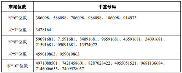 岱美股份7月19日发布向不特定对象发行可转换公司债券网上中签结果公告,凡参与岱美转债网上申购的投资者持有的申购配号尾数与下图号码相同的,则为中签号码。中签号码共60508个,每个中签号码只能认购1手(1000元)岱美转债。