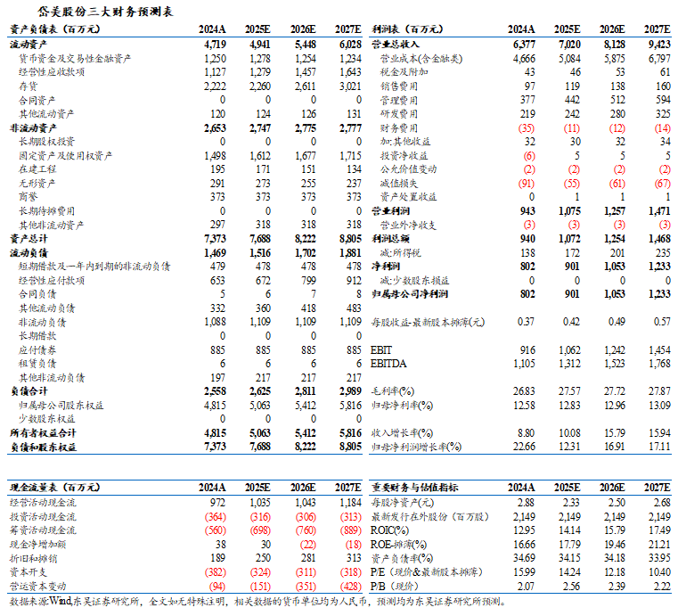 考虑到公司下游配套客户的销量情况,我们将公司2025-2027年归母净利润的预测调整为9.01亿元、10.53亿元、12.33亿元(前值为9.27亿元、10.91亿元、12.80亿元),对应EPS分别为0.42元、0.49元、0.57元,市盈率分别为14.24倍、12.18倍、10.40倍。考虑到公司品类扩张,顶棚新产品打开成长空间,维持“买入”评级。