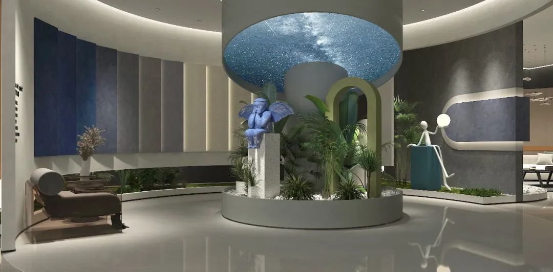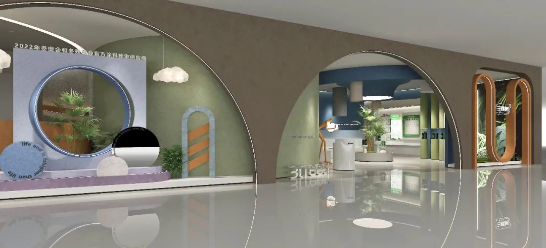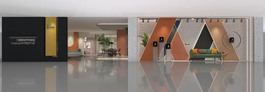 本次获奖展厅出自三棵树涂料空间形象管理部的优秀设计,艺术展区当前展览于三棵树丽水红星美凯龙店,建筑总面积达348㎡,全展区使用不锈钢、艺术漆、透光膜、发光陶瓷等环保艺术材料搭建,确保每一块原材料、每一道建造工序的绿色环保。