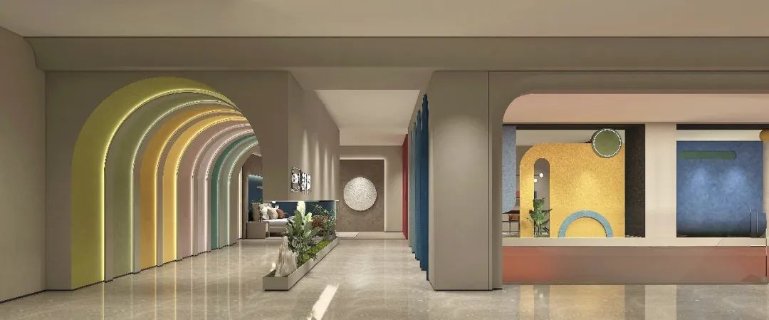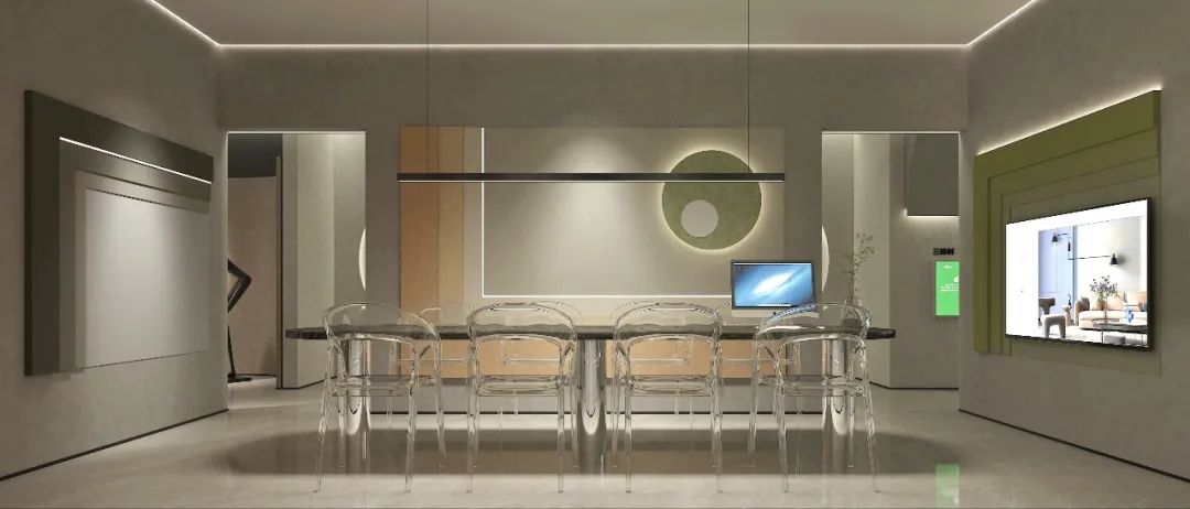 展厅整体空间设计的灵感来源于老子“道法自然”的哲学领悟,“人法地,地法天,天法道,道法自然”,通过同心圆的灵活运用,营造出灵动的空间布局及墙面展示,充分体现出艺术漆的美及特性。自由流动的空间性格奠定了基础,简单的几何体量,无装饰的立面造型,缝隙窥视的即时感,为空间营造了一种新的氛围。