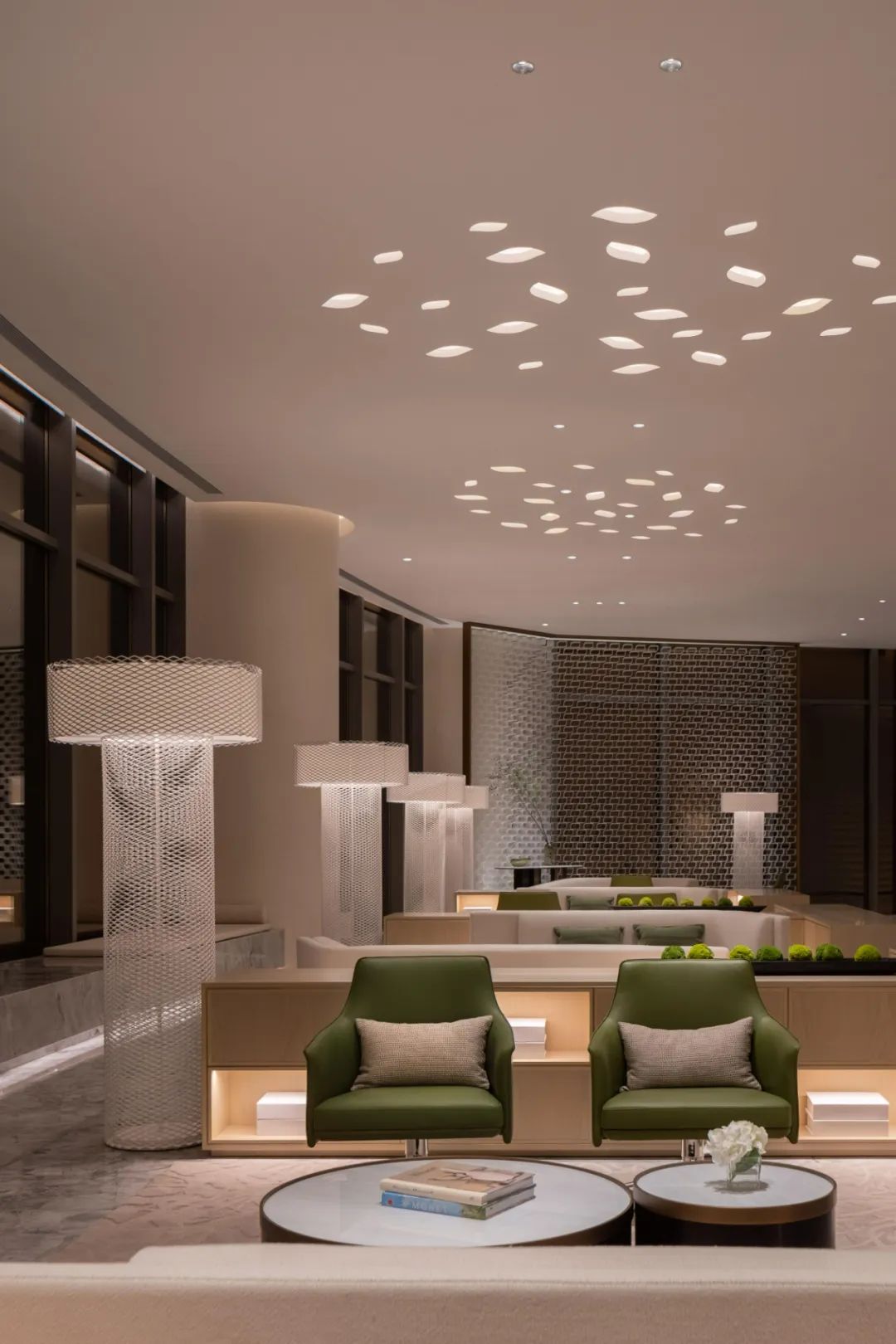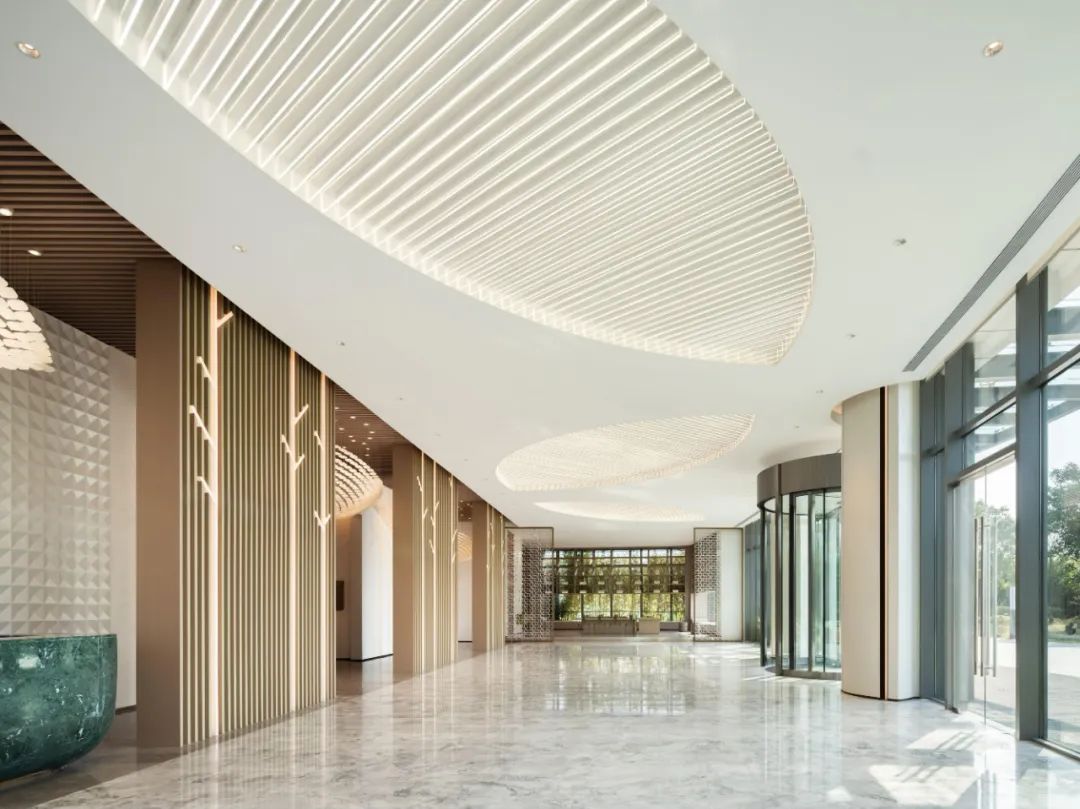 三棵树菁英大楼占地15亩,使用面积25880平方米,历时七年建造而成,其中室内设计历时一年半设计完成。将秀美的自然景色引入菁英大楼室内,并紧紧围绕三棵树“道法自然”企业文化,设计师团队将水、木、土、光、叶的自然主题分别应用于不同的空间设计之中,呼应三棵树大树精神。