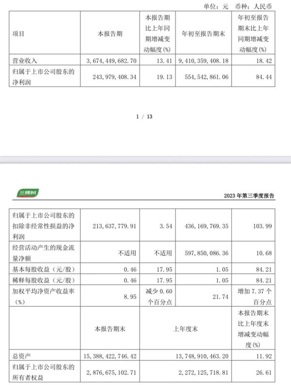 (三棵树2023三季度财报)