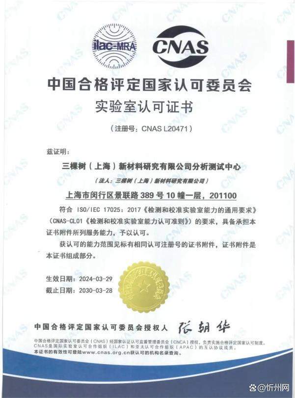 近日,三棵树(上海)新材料研究有限公司分析测试中心获得中国合格评定国家认可委员会(CNAS)批准的CNAS实验室认可证书(注册号:CNAS L20471),并获得国际互认联合认可标识。这也将为三棵树产品研发和质量升级再添保障。