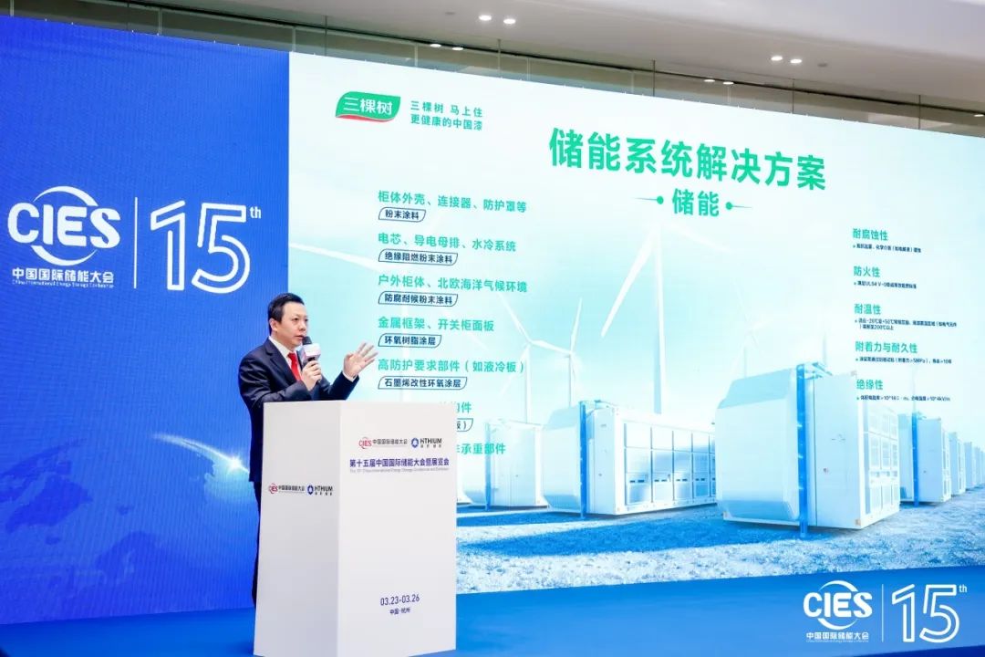 本届大会聚焦储能领域全球前沿技术和实践,探索储能产业高质量发展新路径。在“数智化新型储能系统集成解决方案”专场,三棵树工业涂料事业部总经理缪宁发表题为《高新材料应用于新型储能系统的探索与应用》的主题演讲。