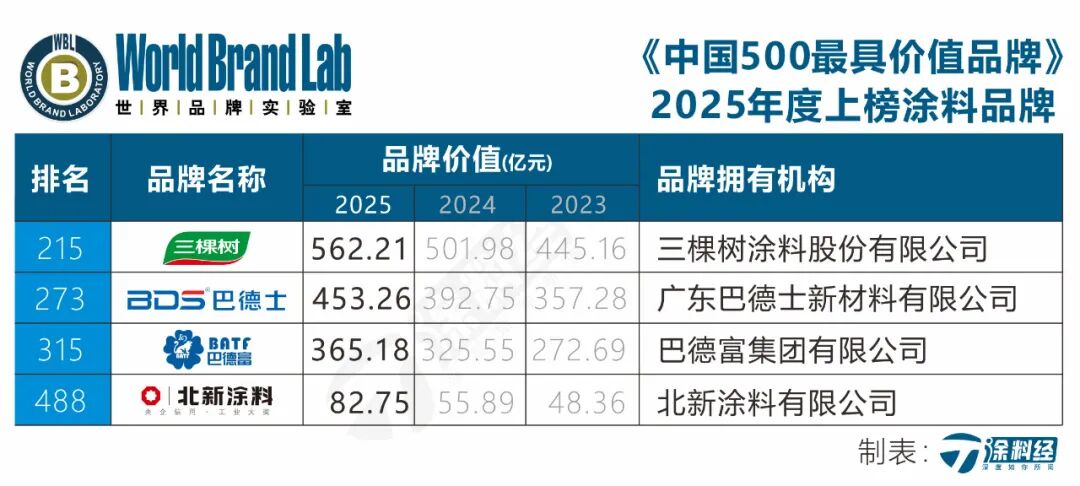 在这份基于财务数据、品牌强度和消费者行为分析的年度报告中,建材行业中,北新建材、三棵树、巴德士、巴德富、北新涂料等建材品牌入选榜单。