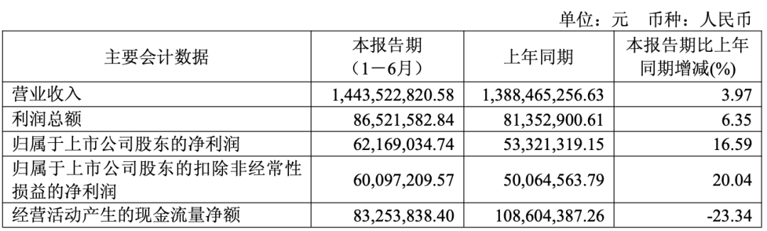 8月14日晚间,天安新材(603725.SH)率先发布2025年半年度报告。报告显示,上半年公司实现营业收入14.44亿元,同比增长3.97%;实现归属于上市公司股东的净利润6216.90万元,同比增长16.59%。