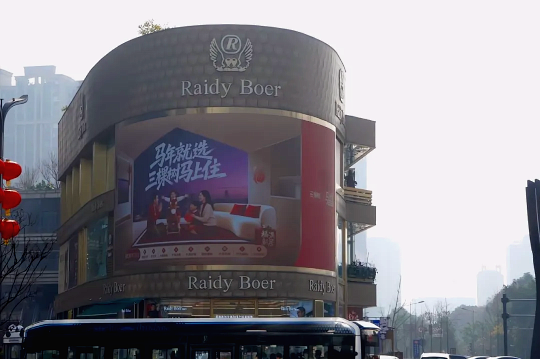 到成都壹号公馆3D大屏上的春意流动