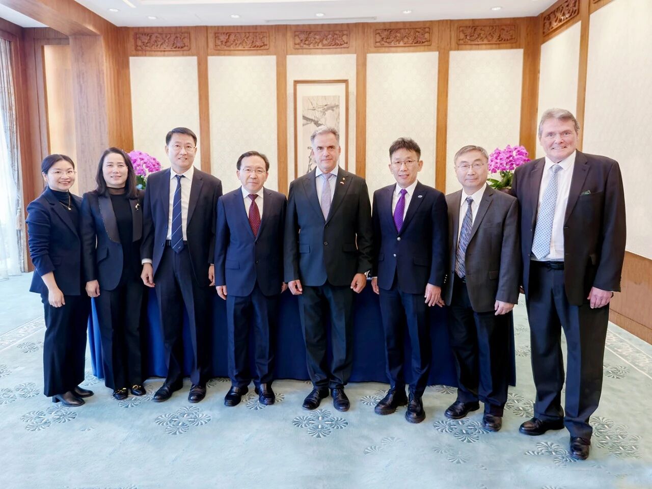 2月5日,乌拉圭总统访华代表团成员、乌拉圭政府科学与知识转化事务国务秘书长戴维·冈萨雷斯率高级代表团访问青岛,其中先后访问了蔚蓝生物动保科技产业园及蔚蓝生物创新园,重点探讨动物疫苗及动物营养领域的合作。
