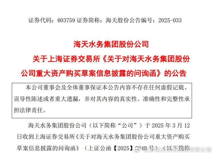 近日,上交所对海天股份下发《关于对海天水务集团股份公司重大资产购买草案信息披露的问询函》。问询函中对公司发展战略及交易目的,主要客户集中及技术迭代风险,专利授权,后续整合安排与发展战略等问题要求公司作出相应回复。3月19日晚间,海天股份就交易所相关问询做出了回复。